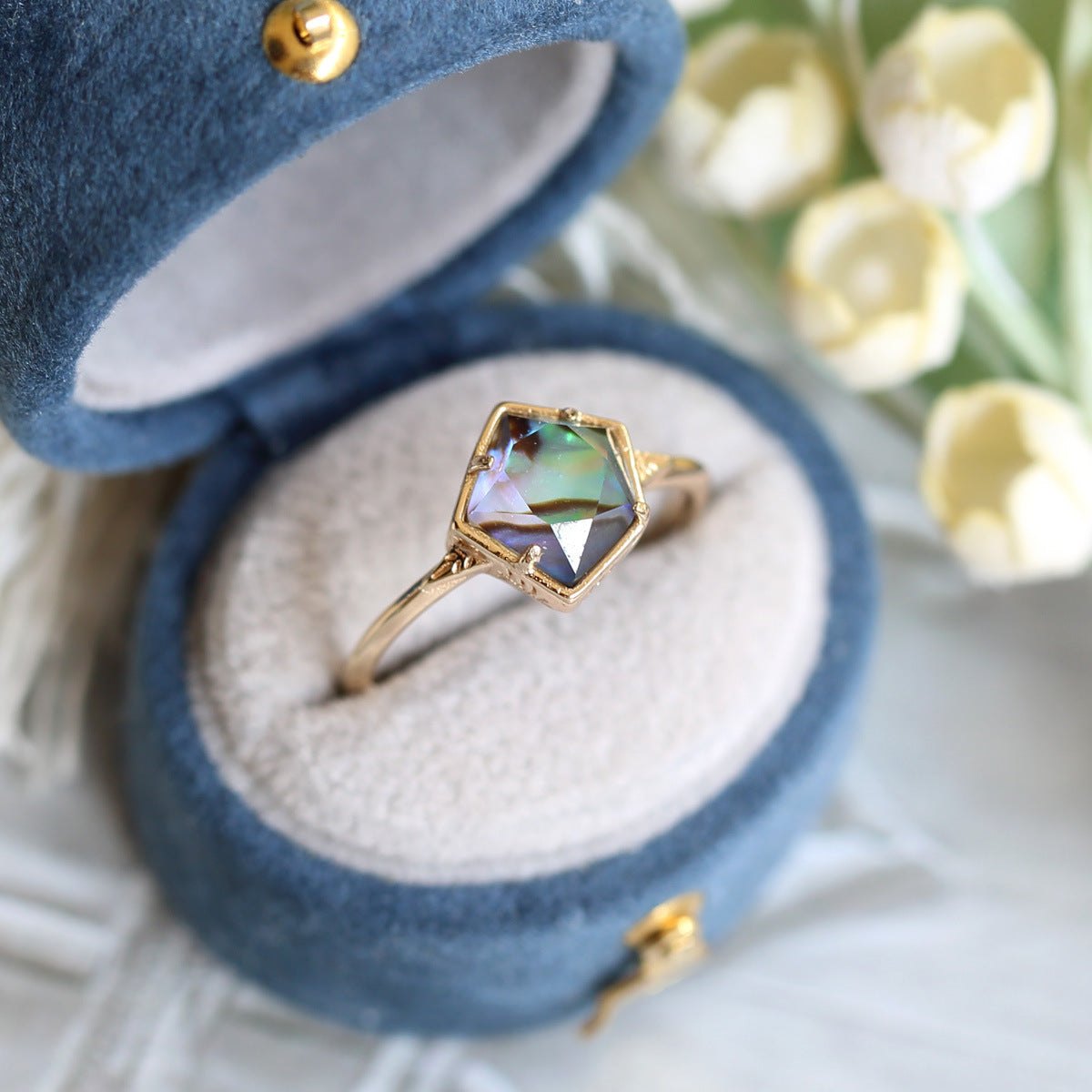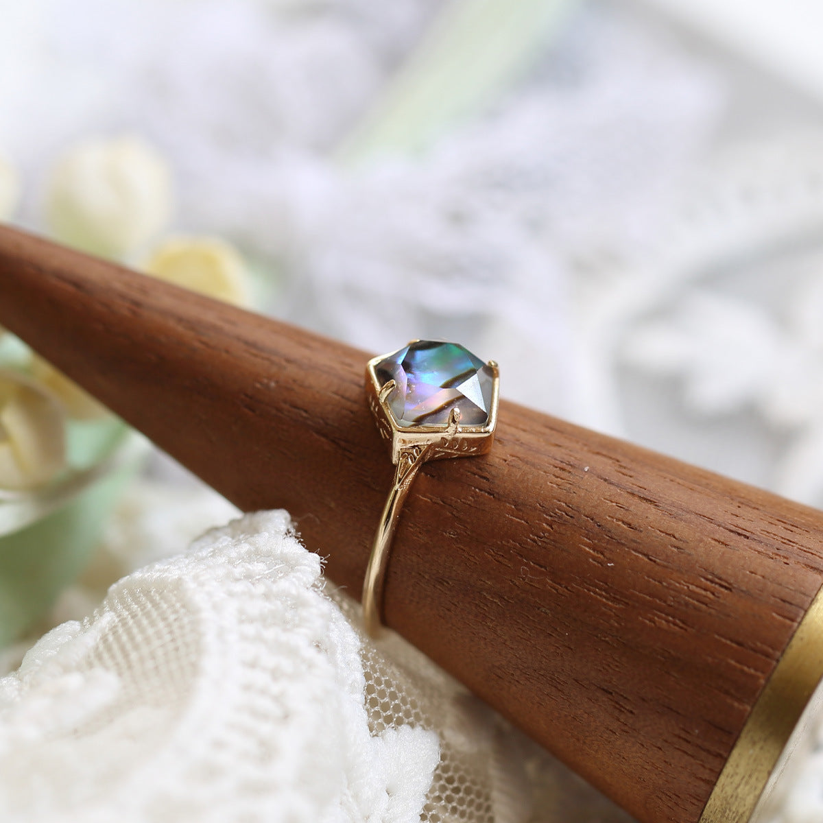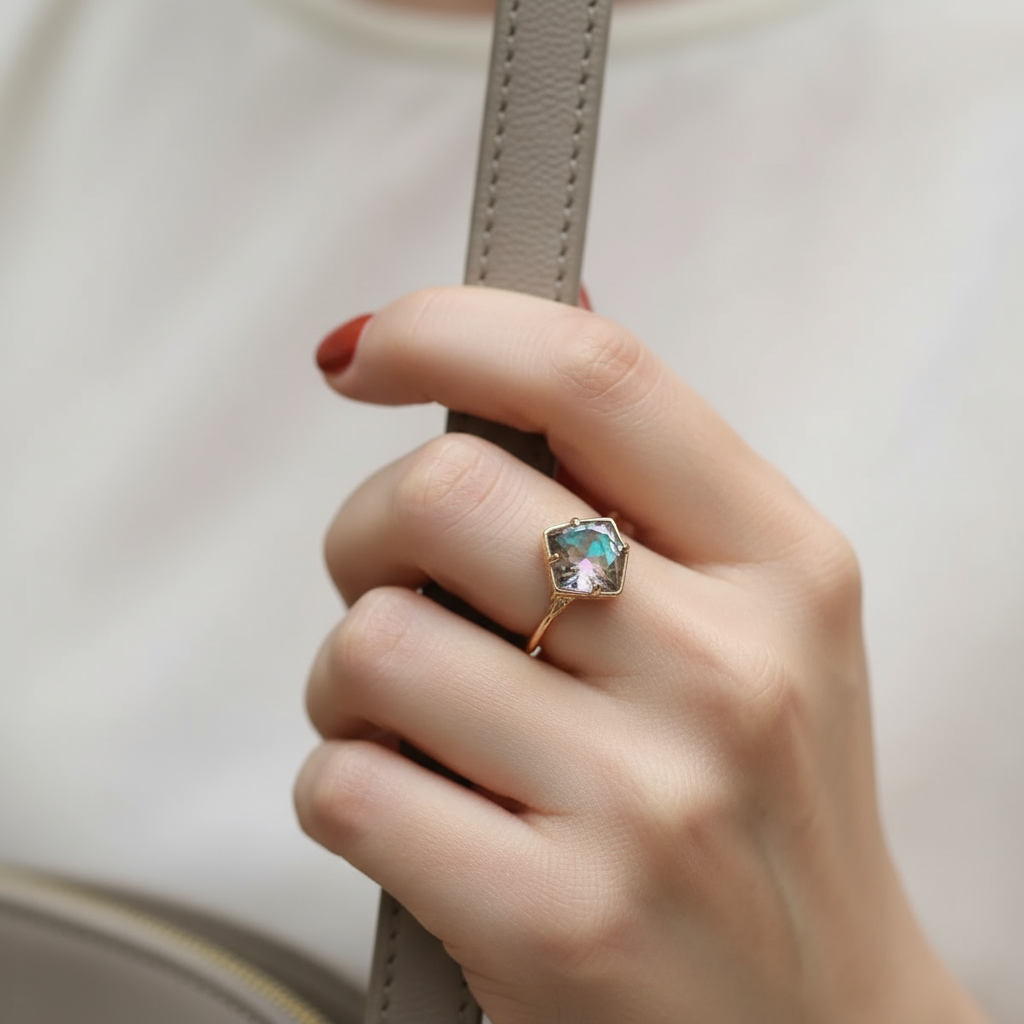 Ein filigraner Ring, der die tiefe Kraft von Wandel, Ursprung und intuitiver Stärke in sich trägt – inspiriert von der natürlichen Energie der Fruchtbarkeit und des Meeres.